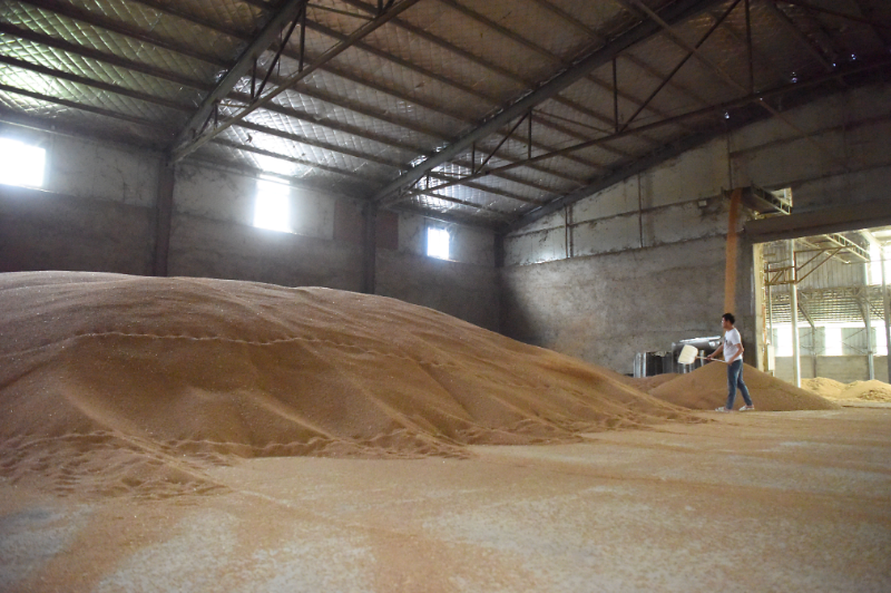 5月30日,在河南省駐馬店市正陽縣大林鎮(zhèn)一家烘干加工合作社,工作人員把烘干后的麥子集中堆放。新華社記者郝源 攝