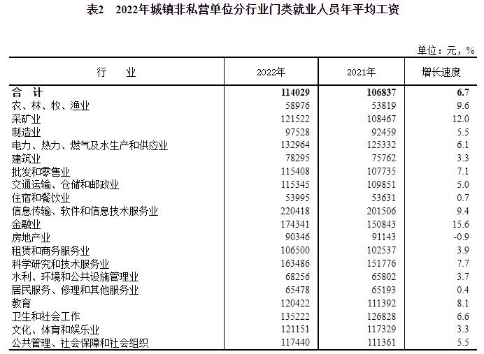 2022年城鎮(zhèn)非私營單位分行業(yè)門類就業(yè)人員年平均工資。來自國家統(tǒng)計局網(wǎng)站