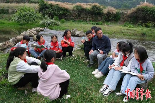龍正富在小溪旁上詩(shī)歌課。