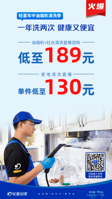 如今,炎熱的夏季已到來,正是家庭清洗油煙機的旺盛時期。面對消費者不斷提升的清洗服務(wù)需求,輕喜到家特推出年中油煙機清洗季活動,為家庭用戶帶來多重油煙機清洗季鉅惠福利,用專業(yè)貼心的清洗服務(wù)造福千萬家庭!
