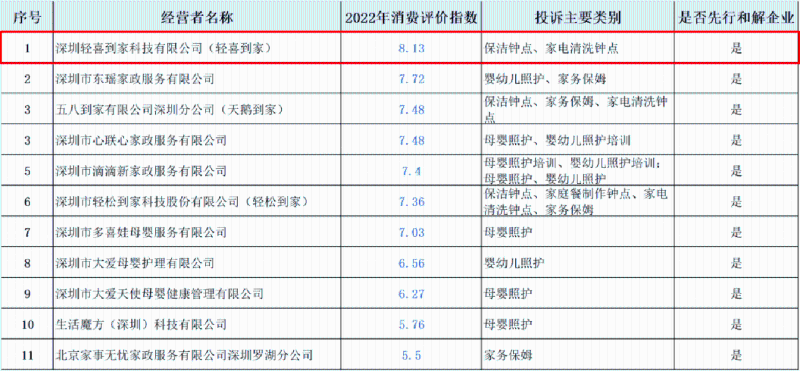 2022年,輕喜到家在深圳市消費者委員會重點公布的2022年家政行業(yè)消費評價指數(shù)排行榜中排名首位,秉承著“提高中國家庭生活品質(zhì)”的初心,輕喜到家深耕用戶服務(wù)體驗與標準化建設(shè),通過全方位打造產(chǎn)品深度、完善自身服務(wù)規(guī)范,得到了更多家庭的認可與信賴。未來,輕喜到家將不斷豐富產(chǎn)品服務(wù)內(nèi)容,助力行業(yè)提質(zhì)增效。