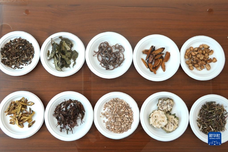 這是5月19日在新北市拍攝的中藥復(fù)方“清冠一號(hào)”所用藥材。新華社記者 尚昊 攝