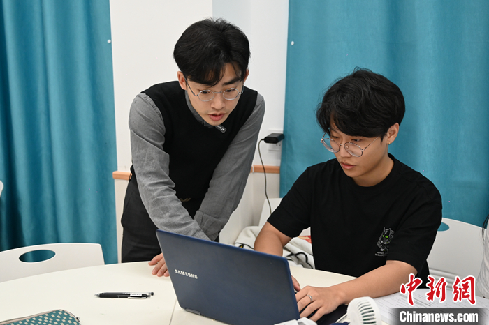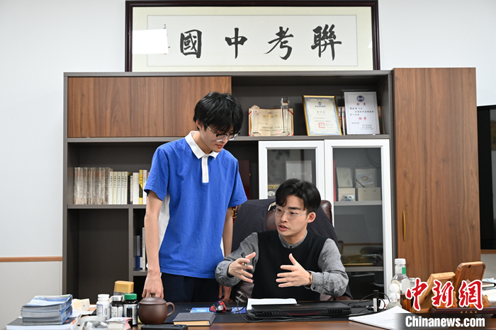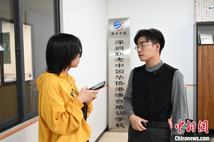 中新社記者近日走進(jìn)深圳聯(lián)考中國華僑港澳臺聯(lián)考學(xué)校(下稱“深圳聯(lián)考中國”),一間整潔明亮的辦公室里,書架上擺滿了各種教育和文化類書籍。這是臺灣青年蕭家慶日常工作的地方。