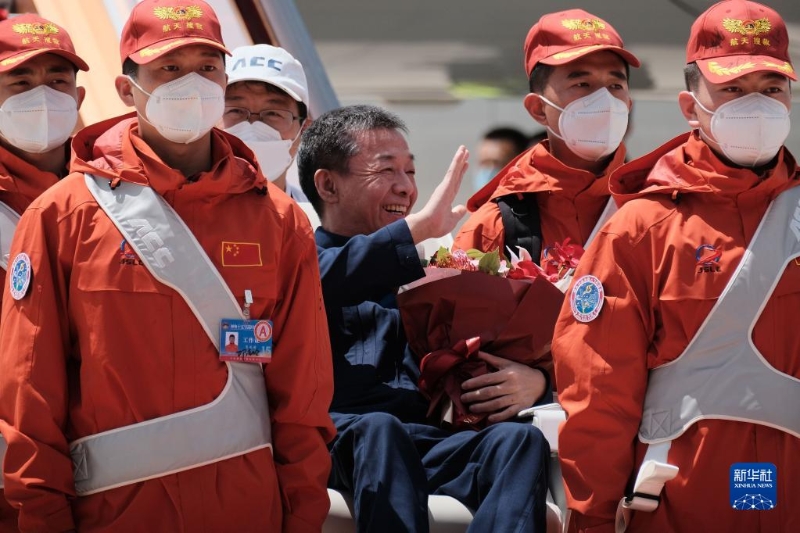 6月4日,神舟十五號航天員乘組平安抵京,航天員張陸向歡迎人群揮手致意。新華社記者 李杰 攝