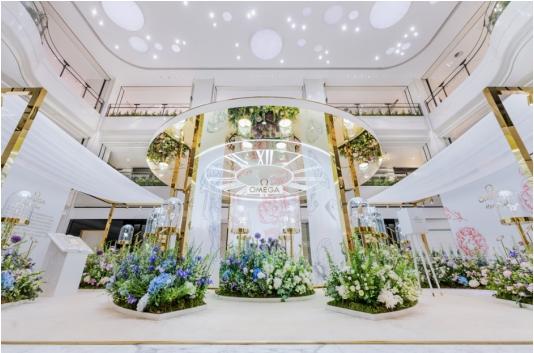 展覽采用白、金為主色調(diào),在充滿絢麗花朵的奇境花園中,呈現(xiàn)了星座、海馬、超霸與碟飛四大系列最新的女士腕表作品,以及歐米茄歷史上的女士時(shí)計(jì)代表作。