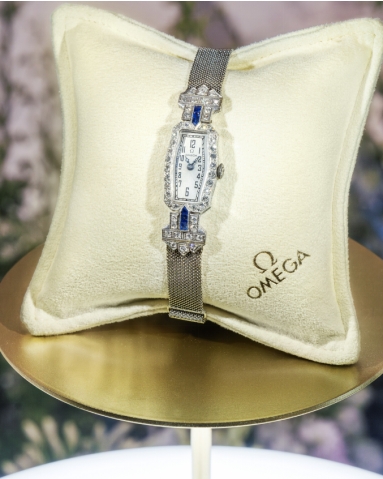 2015年,佳士得曾上拍一枚與現(xiàn)場展品極為相似的歐米茄裝飾藝術(shù)風(fēng)格鉆石腕表,曾是民國財(cái)政部長、四大家族之一的孔祥熙家族珍藏,成交價(jià)約7萬港幣。