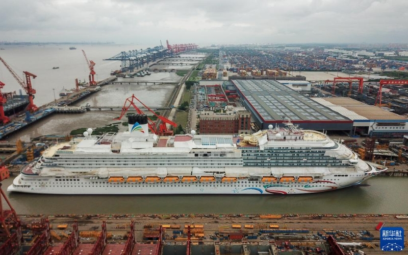 這是6月6日拍攝的首艘國(guó)產(chǎn)大型郵輪“愛(ài)達(dá)·魔都號(hào)”。