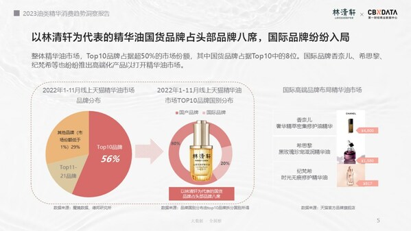根據(jù)第一財(cái)經(jīng)商業(yè)數(shù)據(jù)中心的發(fā)布《2023油類精華消費(fèi)趨勢(shì)洞察報(bào)告》中指出,精華油、以油養(yǎng)膚,以及"抗老精華油"的概念在小紅書、抖音等社交平臺(tái)的搜索指數(shù)不斷攀升,小紅書上"以油養(yǎng)膚"話題的瀏覽總量超過(guò)了1.2億,過(guò)去一年線上淘寶天貓及京東平臺(tái)精華油銷售額同比增速達(dá)64%。在國(guó)內(nèi)外品牌紛紛跟進(jìn)推出油類護(hù)膚產(chǎn)品之際,林清軒憑借山茶花油的提前布局,借勢(shì)快速進(jìn)入爆發(fā)期。