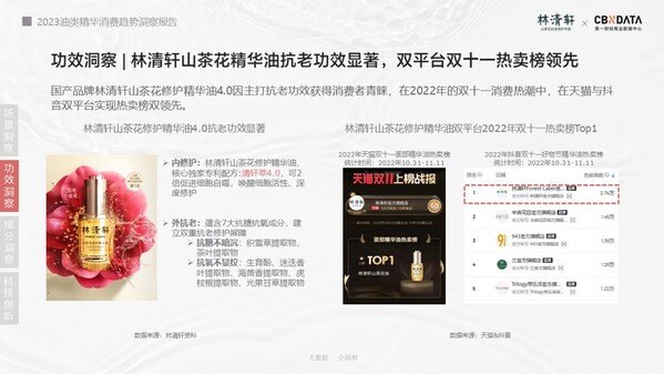 值得注意的是,這也是繼2022年雙十一、2023年3·8煥新周之后,林清軒山茶花精華油三度蟬聯(lián)天貓品類熱賣第一。至此,林清軒又一次用銷量和殺出外資品牌重重包圍的排名,強(qiáng)勢(shì)宣告了品牌的硬核實(shí)力。