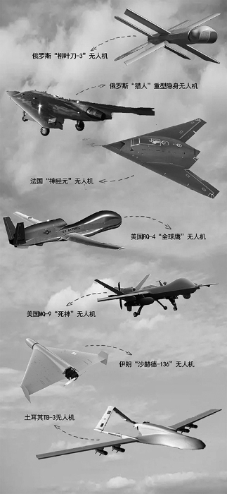 各軍事強(qiáng)國(guó)瞄準(zhǔn)無(wú)人機(jī)技術(shù)、裝備,加大研發(fā)力度。除美國(guó)早早涉足外,俄羅斯、英國(guó)、法國(guó)、土耳其、以色列、伊朗、印度等國(guó)無(wú)人機(jī)技術(shù)也發(fā)展迅猛,一家獨(dú)大正向“百花齊放”轉(zhuǎn)變。土耳其TB-2察打一體無(wú)人機(jī)已成明星,TB-3艦載無(wú)人機(jī)正在研制,“紅蘋果”新型隱身無(wú)人機(jī)即將首飛,全球首艘無(wú)人機(jī)航母也已正式服役。俄羅斯“獵戶座”察打一體無(wú)人機(jī)在敘利亞和烏克蘭戰(zhàn)場(chǎng)多有戰(zhàn)績(jī),“獵人”重型隱身無(wú)人攻擊機(jī)已完成首飛、與有人機(jī)聯(lián)合飛行、發(fā)射導(dǎo)彈等測(cè)試。伊朗“沙赫德-136”“沙赫德-129”無(wú)人機(jī),因戰(zhàn)場(chǎng)表現(xiàn)優(yōu)異而名聲在外。