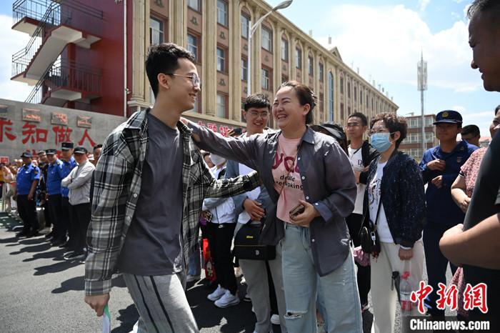 圖為6月7日,內(nèi)蒙古呼和浩特市第八中學(xué)高考考點(diǎn),語(yǔ)文考試結(jié)束后,考生與家長(zhǎng)相聚。 中新社記者 劉文華 攝
