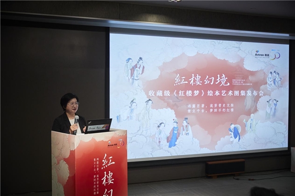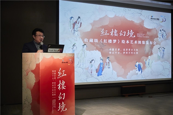 中國(guó)紅樓夢(mèng)學(xué)會(huì)會(huì)長(zhǎng)孫偉科,《紅樓夢(mèng)研究》期刊編委許軍杰、北京廣播電視臺(tái)財(cái)經(jīng)頻道《大家收藏》制片人范紅軍、深圳市儒家文化研究會(huì)會(huì)長(zhǎng)韓望喜博士、旅順博物館館長(zhǎng)王振芬分別在發(fā)布會(huì)上致辭。雅昌文化集團(tuán)董事長(zhǎng)萬(wàn)捷在發(fā)布會(huì)上熱情致辭,介紹收藏級(jí)《紅樓夢(mèng)》繪本藝術(shù)圖集產(chǎn)品,并邀請(qǐng)出席的領(lǐng)導(dǎo)、嘉賓代表共同為收藏級(jí)《紅樓夢(mèng)》繪本藝術(shù)圖集揭幕,隨后參觀了《紅樓夢(mèng)》藝術(shù)數(shù)字展廳。