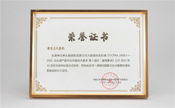國(guó)家文化大數(shù)據(jù)體系標(biāo)準(zhǔn)制定企業(yè)證書