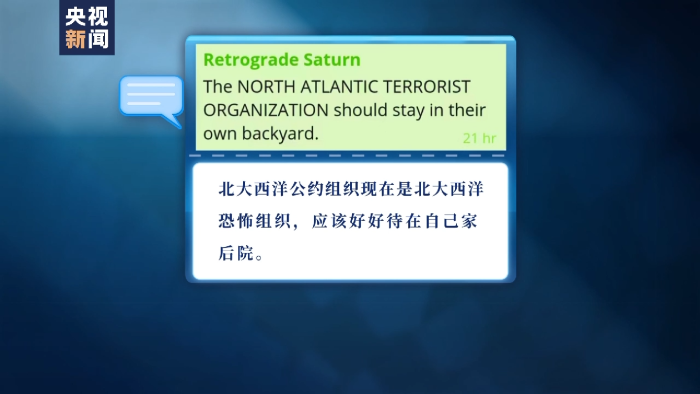 還有網(wǎng)友批評稱:“北大西洋公約組織現(xiàn)在是北大西洋恐怖組織,應(yīng)該好好待在自己家后院。”