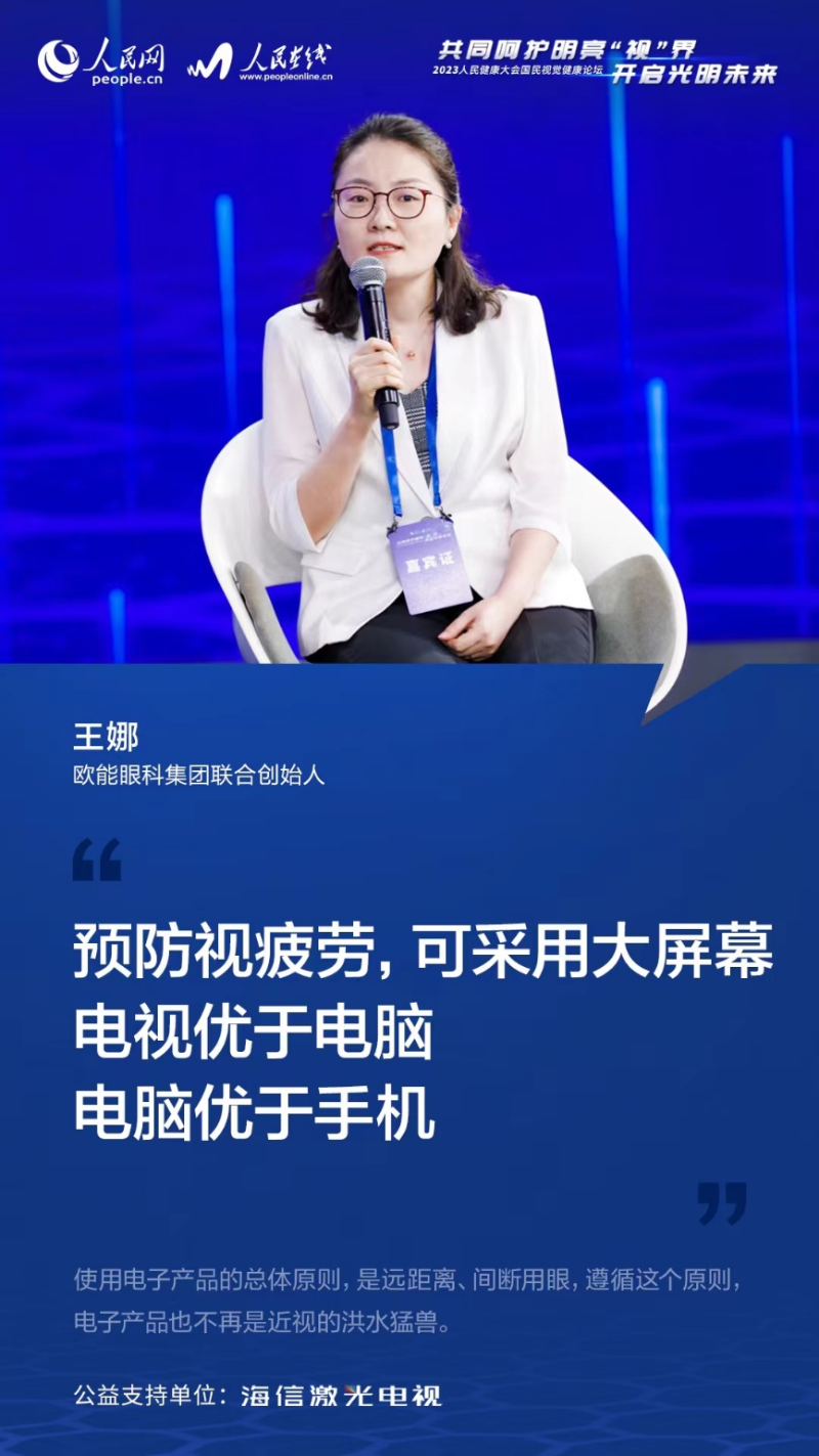 專家們還對青少年使用電子產(chǎn)品給出了具體建議。歐能眼科集團聯(lián)合創(chuàng)始人、重慶市婦幼衛(wèi)生學會兒童心理行為與發(fā)展專委會視覺行為發(fā)育學組副組長王娜提到,使用電子產(chǎn)品的總體原則,是遠距離、間斷用眼,遵循這個原則,電子產(chǎn)品也不再是近視的洪水猛獸。她建議道,“預(yù)防視疲勞,可采用大屏幕。電視優(yōu)于電腦,電腦優(yōu)于手機”。