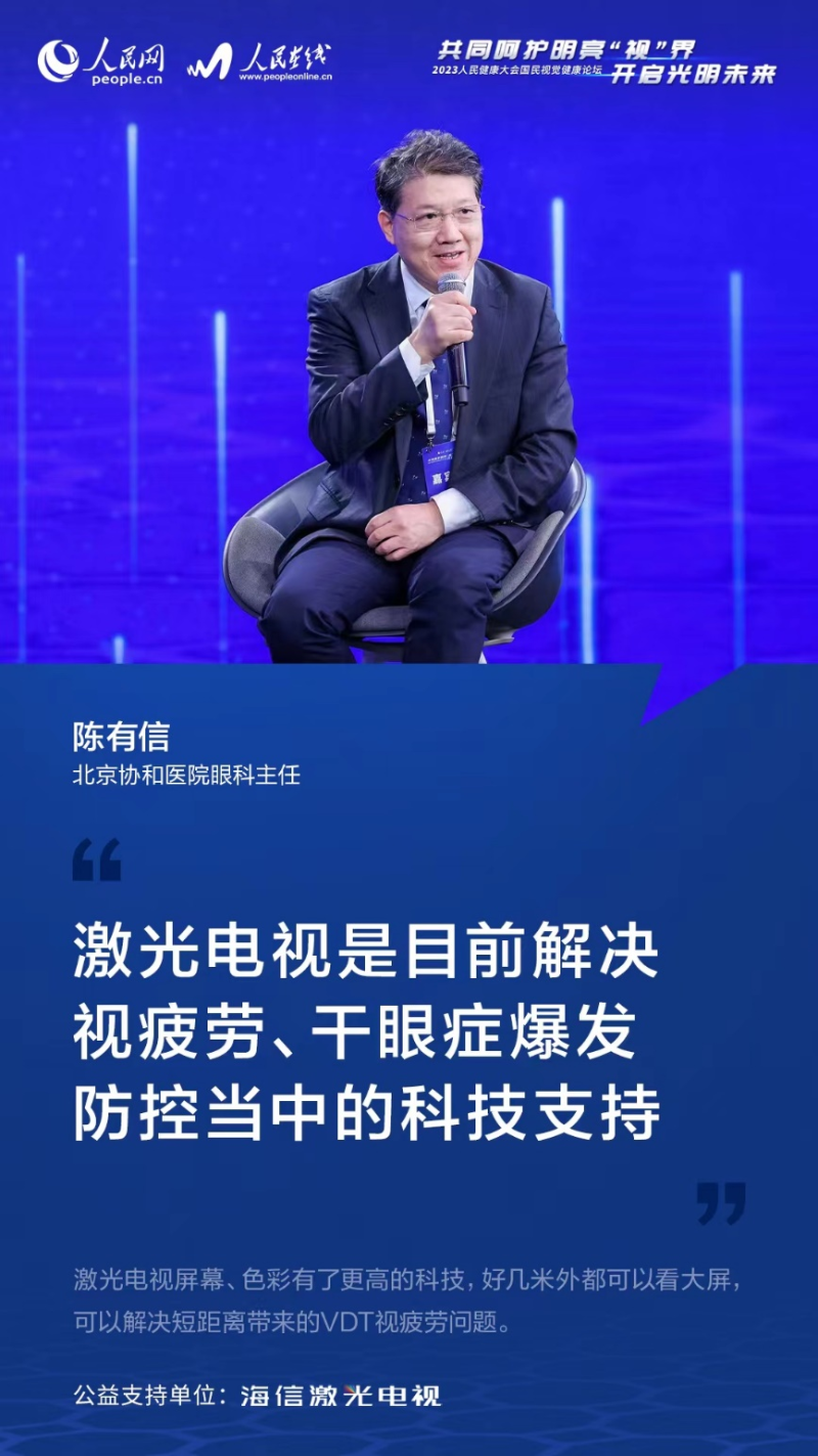 在談及更加護眼的顯示產(chǎn)品時,北京協(xié)和醫(yī)院眼科主任陳有信對激光電視的護眼設(shè)計深表認可:“激光電視做得非常好,它將光反射到屏幕,而擁有更高科技的屏幕使畫面的色彩、光強度、觀影距離都合適,這種類型的電視及顯示屏是我們目前解決視疲勞、干眼癥爆發(fā)防控當中的科技支持?!?/p>