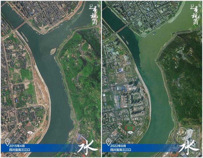 ↑2022年跟2015年相比,三江口更綠了。