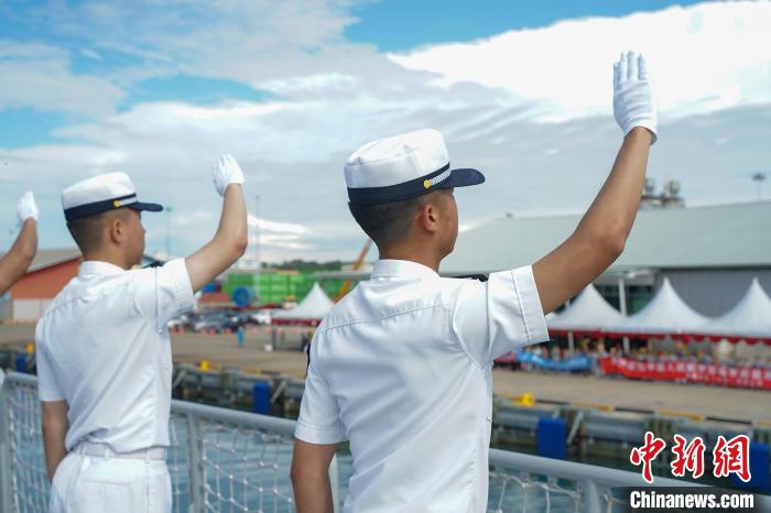 當?shù)貢r間上午9時,文方在摩拉港碼頭舉行了隆重的歡送儀式。中國駐文萊大使肖建國、武官戴祁林等,以及中資機構(gòu)代表、華僑華人代表、文萊海軍官兵代表等200余人位碼頭送行。