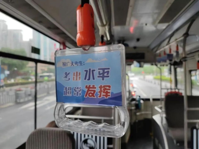 高新區(qū)400路公交車途經(jīng)新區(qū)一中,每天都有學(xué)生乘坐,為營(yíng)造良好的高考出行氛圍,高新區(qū)分公司對(duì)400路上的蘇州金龍蔚藍(lán)公交進(jìn)行了精心裝扮,在車廂內(nèi)拉手處送上祝福語(yǔ),“祝考生考出水平,超常發(fā)揮”。同時(shí),工作人員還在車頭放置了醒目標(biāo)注高考考點(diǎn)及軌道接駁站點(diǎn)路牌,與軌道交通攜手助力高考學(xué)子便捷出行。