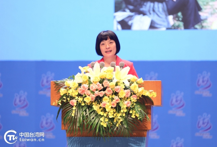 臺灣青年、廈門市海滄區(qū)海峽城鄉(xiāng)發(fā)展基金會理事長李佩珍在論壇大會上發(fā)言。(中國臺灣網(wǎng) 尹賽楠 攝)