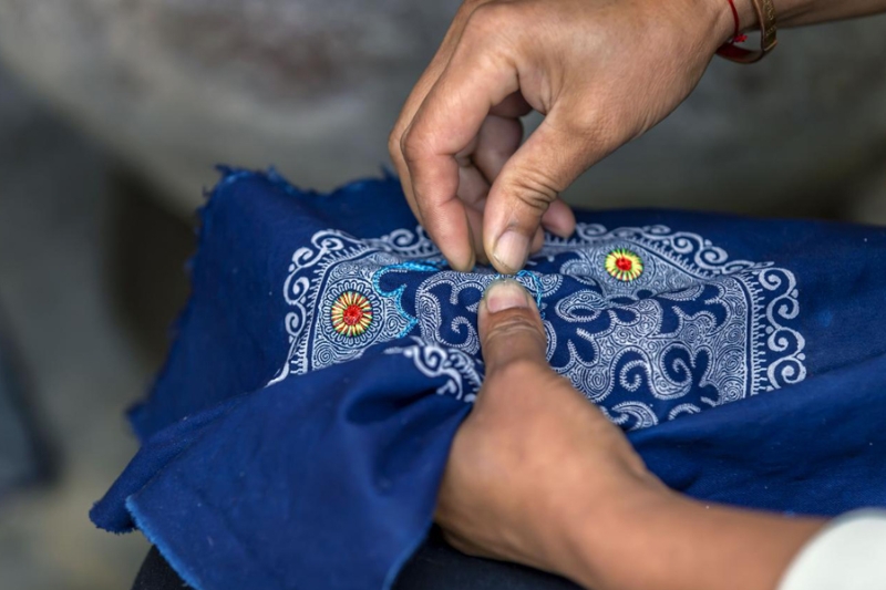 畢節(jié)市黔西縣新仁苗族鄉(xiāng)化屋村是苗族聚居地,民族特色鮮明,被命名為“中國民間文化藝術(shù)之鄉(xiāng)”。苗繡、蠟染等成為這個(gè)村重點(diǎn)發(fā)展的特色產(chǎn)業(yè)。紅色、綠色、藍(lán)色……飛針走線五彩繽紛;繡、插、點(diǎn)、挑……制作手法千變?nèi)f化的苗繡在2006年首批列入國家級(jí)非物質(zhì)文化遺產(chǎn)代表性項(xiàng)目名錄。
