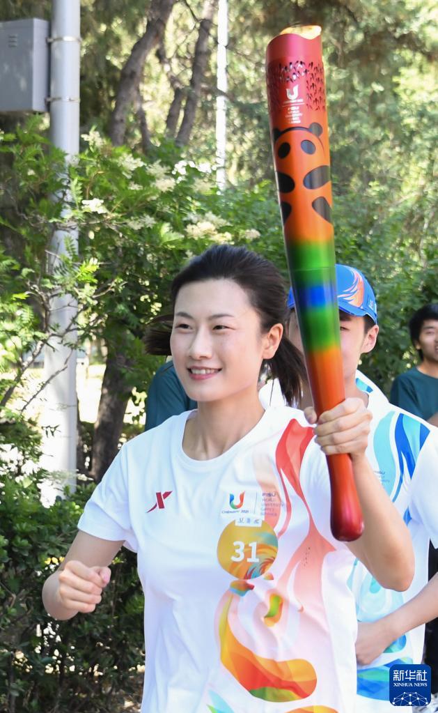 “這是我第二次參與大運會火炬?zhèn)鬟f,我特別榮幸和高興,說明我還依然年輕?!眾W運冠軍、中國女子乒乓球大滿貫得主鄧亞萍笑著說,“我非常愿意跟年輕人在一起,享受體育帶來的健康和快樂。”