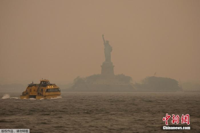 圖為當(dāng)?shù)貢r間6月6日,美國紐約的自由女神像籠罩在煙霧中。