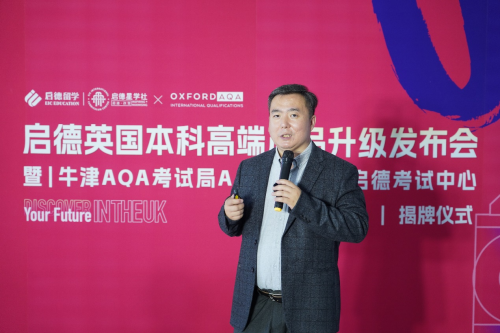 在眾多激烈且復雜多變的留學申請競爭中,啟德致力于幫助留學生沖擊名校。為此,5月27日,啟德星學社(北京)正式掛牌成為牛津AOA考試局A??Level授權考試中心,并全面升級啟德英國高端本科產(chǎn)品。在掛牌儀式上,牛津AQA中國區(qū)總經(jīng)理唐麟琪先生對啟德星學社A??Level考試中心提出了期望。