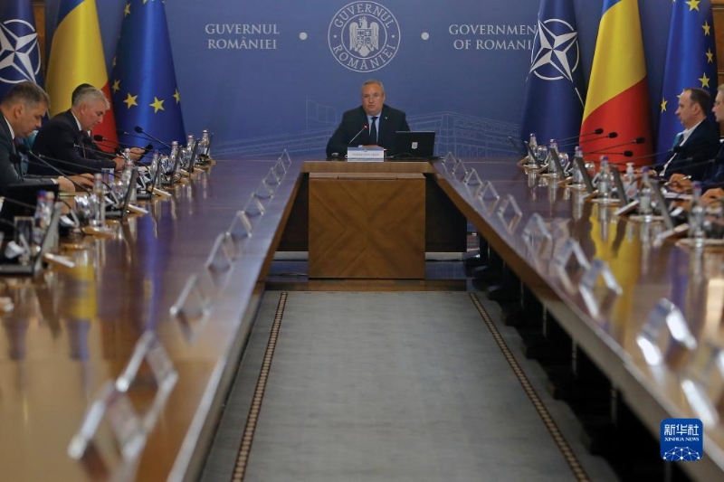 6月11日,羅馬尼亞總理丘克(中)在布加勒斯特出席政府會議。新華社發(fā)(克里斯泰爾攝)