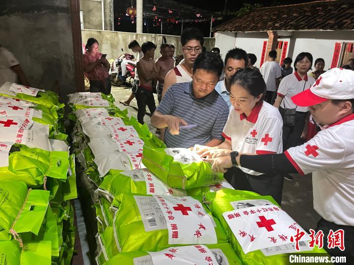 圖為北海市紅十字會在災(zāi)區(qū)派送大米?!”焙J屑t十字會供圖