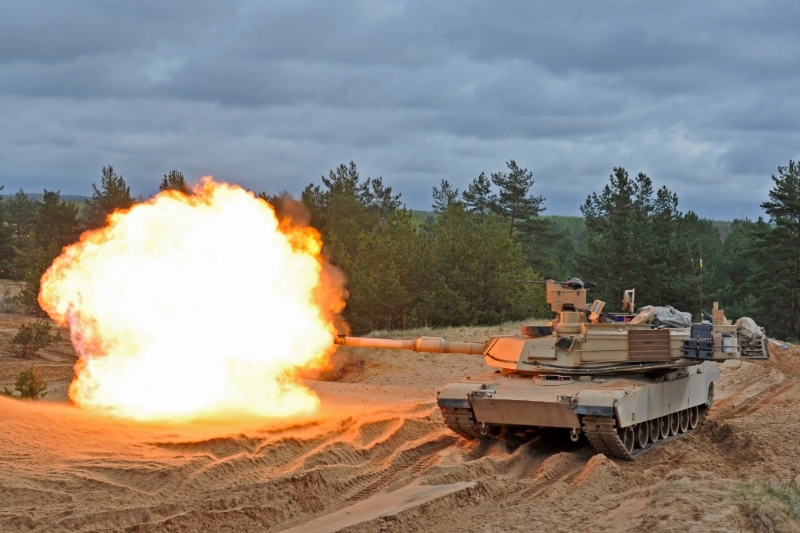 2015年5月7日,在拉脫維亞阿達日軍事基地靶場,一輛美軍“艾布拉姆斯”M1A2主戰(zhàn)坦克進行實彈射擊訓(xùn)練。新華社記者郭群攝