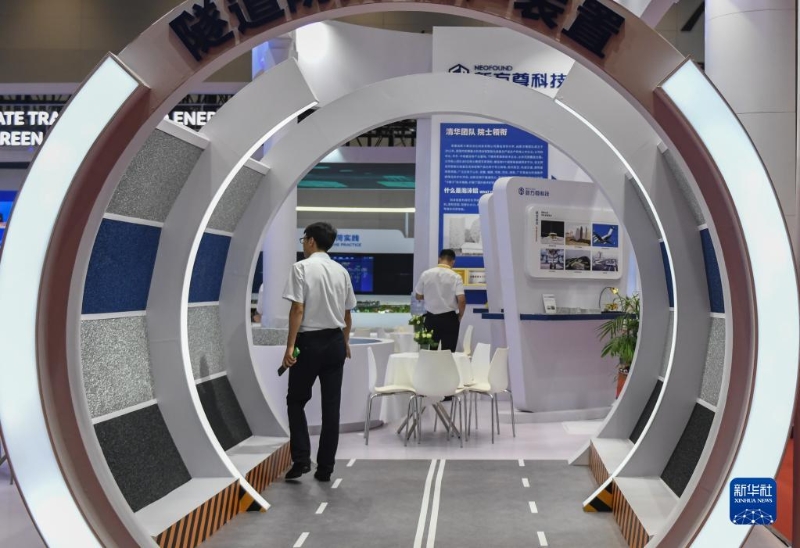 6月14日,觀眾在參觀一款隧道防火、隔聲裝置。