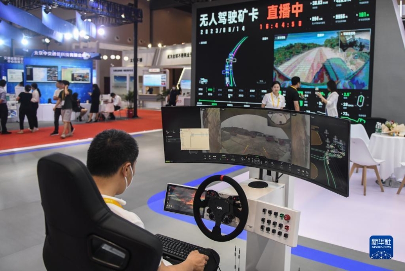 6月14日,一套無(wú)人駕駛礦卡系統(tǒng)在展示中。
