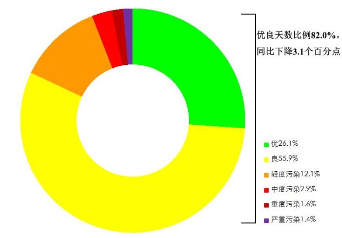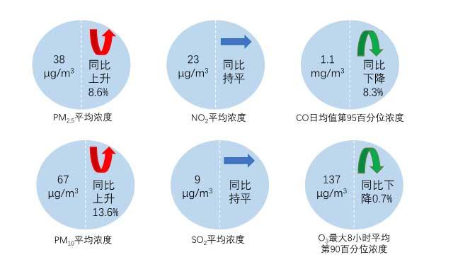 1—5月,全國339個地級及以上城市平均空氣質(zhì)量優(yōu)良天數(shù)比例為82.0%,同比下降3.1個百分點;平均重度及以上污染天數(shù)比例為3.0%,同比上升1.6個百分點;PM2.5平均濃度為38微克/立方米,同比上升8.6%;PM10平均濃度為67微克/立方米,同比上升13.6%;O3平均濃度為137微克/立方米,同比下降0.7%;SO2平均濃度為9微克/立方米,同比持平;NO2平均濃度為23微克/立方米,同比持平;CO平均濃度為1.1毫克/立方米,同比下降8.3%。