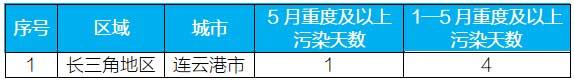 5月重點區(qū)域出現(xiàn)重度及以上污染天的城市及具體天數(shù)詳見附表3。