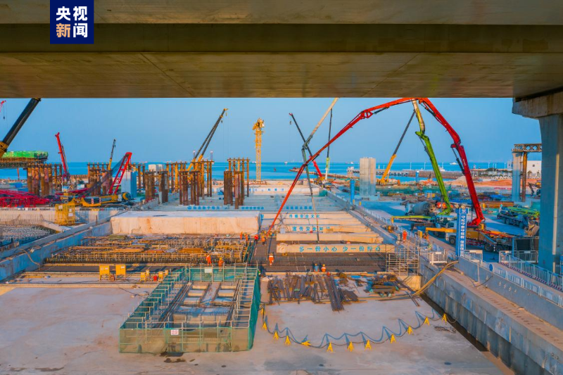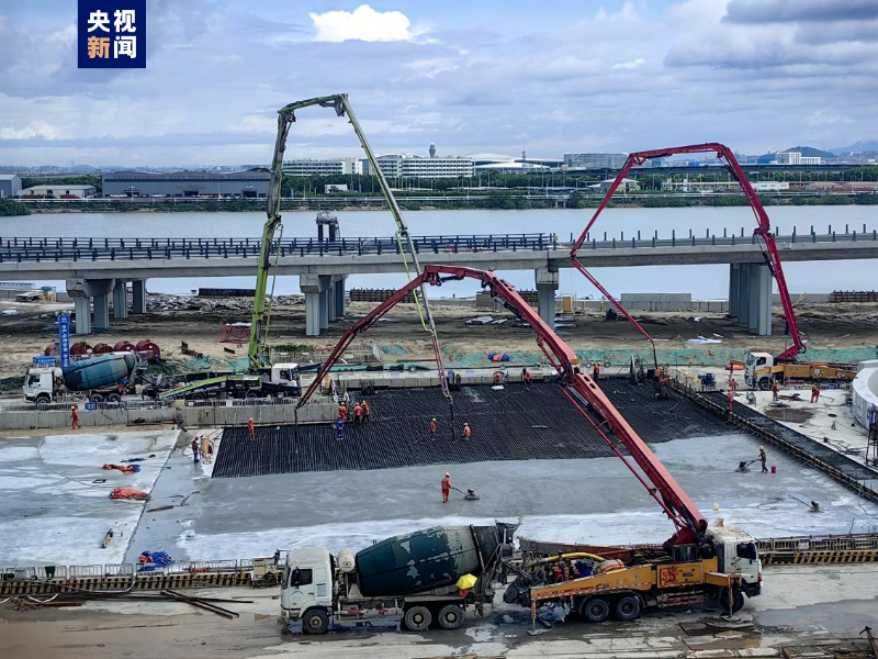 深中通道東人工島正澆筑主線隧道最后一段頂板混凝土(攝影:趙永才)