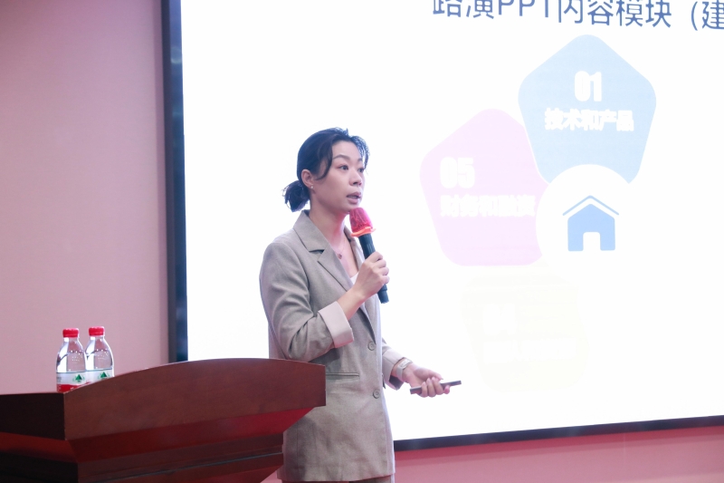 聶晨曦主任通過(guò)“結(jié)構(gòu)化思考”“形象化表達(dá)”“結(jié)構(gòu)內(nèi)容”“亮點(diǎn)呈現(xiàn)”等方面詳細(xì)分享了路演PPT制作的重點(diǎn)、要點(diǎn)。并從本次大賽的評(píng)審維度、評(píng)審要點(diǎn),在“賽前準(zhǔn)備工作”“路演細(xì)節(jié)把握”和“臨場(chǎng)應(yīng)變”三個(gè)方面,結(jié)合多年的大賽評(píng)審經(jīng)驗(yàn),向參賽選手講授了路演答辯技巧和形象禮儀的重要性,幫助參賽選手全面提升決賽項(xiàng)目路演技能水平。