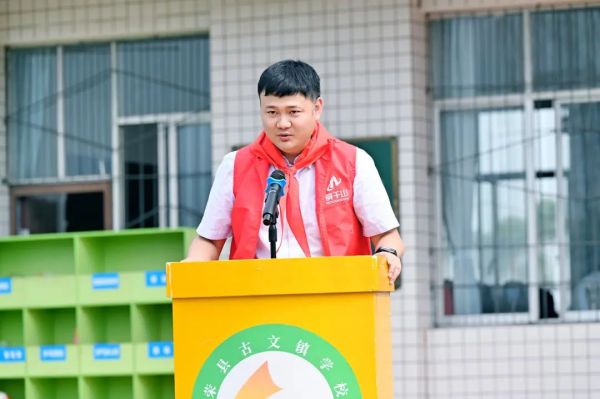 浙江云峰莫干山營(yíng)銷(xiāo)有限公司少帥俱樂(lè)部會(huì)員代表顧仲凱上臺(tái)致辭,表達(dá)了對(duì)孩子們的真摯祝福,同時(shí)作為莫干山板材年輕力量的代表,呼吁年輕群體為公益事業(yè)注入力量。