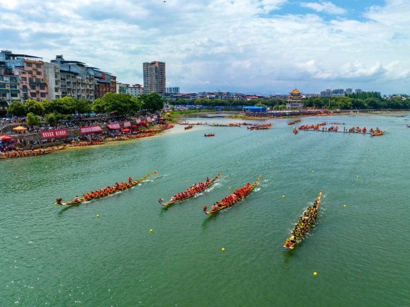 湖南汨羅江上,龍舟競相角逐;湖北秭歸縣三峽大壩前,隊員劃槳整齊劃一;廣東東莞東江水面上,百舸爭流浪花翻滾……