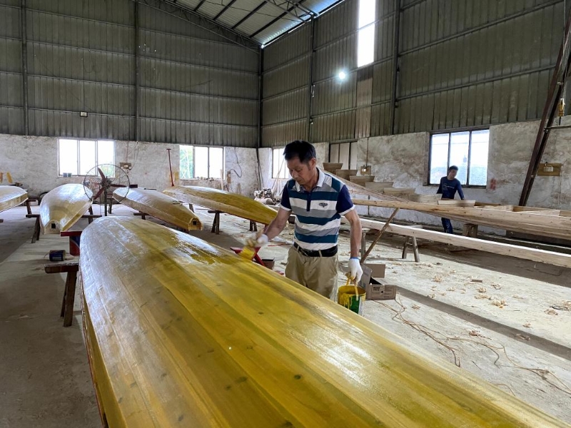 龍舟賽帶火了龍舟周邊產(chǎn)業(yè)。湖南省汨羅市作為屈原沉江殉國之地,龍舟制造遠(yuǎn)近知名。記者在汨羅市龍舟制造企業(yè)集中的屈子祠鎮(zhèn)走訪時,看到多家龍舟企業(yè)銷售火爆?!敖衲甓宋绻?jié)前,加班加點趕制,已賣出130多艘龍舟,數(shù)量遠(yuǎn)超前幾年?!币患引堉壑圃鞆S的負(fù)責(zé)人周亮說。廣東廣州番禺區(qū)上漖村有著百年龍舟制造歷史,上漖村“龍船世家”負(fù)責(zé)人、上漖龍舟制作技藝第五代傳承人黃劍挺說,今年參與制作的新龍舟有12艘,翻新、上漆、打磨的有四五十艘,相比去年同期增長了3倍多。