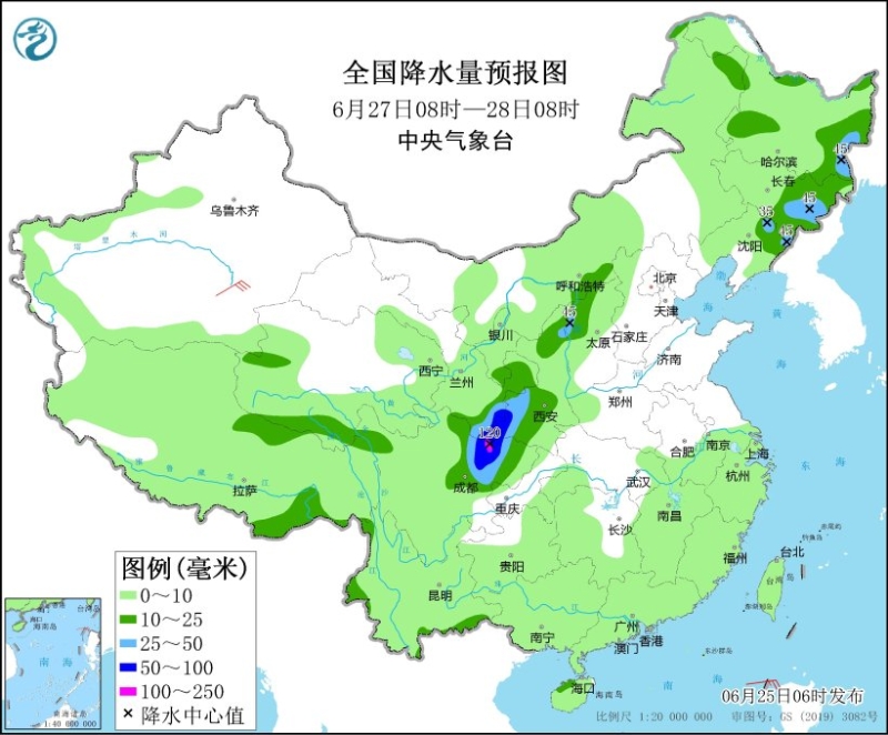全國降水量預報圖(6月25日08時-26日08時)