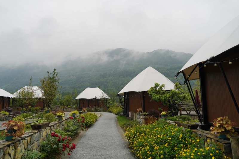 清平鎮(zhèn)地處九頂山南麓山腳,九頂山也是長(zhǎng)江支流沱江的源頭所在地。2017年,借力大熊貓國(guó)家公園建設(shè),清平鎮(zhèn)開始封停礦井進(jìn)行生態(tài)修復(fù),轉(zhuǎn)型發(fā)展旅游,告別“礦業(yè)經(jīng)濟(jì)”。礦山關(guān)停后,劉光蘭所在的鹽井村村集體成立了金色清平旅游開發(fā)公司,分批建設(shè)旅游設(shè)施,打造旅游項(xiàng)目,她加入旅游公司,從一名導(dǎo)游逐漸做到露營(yíng)、餐飲等項(xiàng)目的業(yè)務(wù)負(fù)責(zé)人。