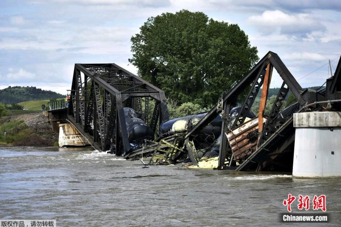中新網(wǎng)6月25日電 據(jù)美聯(lián)社報道,當(dāng)?shù)貢r間24日早,美國蒙大拿州一座橫跨黃石河的橋梁倒塌,橋上駛過的一輛運載危險物質(zhì)的貨運火車的多節(jié)車廂,掉入下面湍急的水中。蒙大拿鐵路公司表示,落水的車廂中裝有瀝青和熔融硫,不過事故沒有造成人員傷亡。