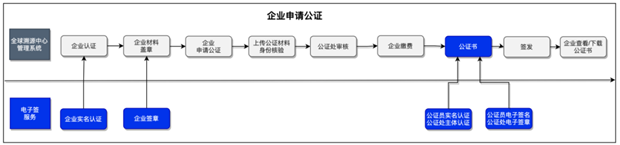 通過API的方式將電子簽服務(wù)接口能力集成對(duì)接到全球溯源中心管理系統(tǒng),根據(jù)實(shí)際業(yè)務(wù)流程調(diào)用接口能力,即可實(shí)現(xiàn)從企業(yè)認(rèn)證到電子公證報(bào)告簽發(fā),且整個(gè)簽發(fā)過程在系統(tǒng)內(nèi)網(wǎng)即可完成,為信息安全提供了有力保障。