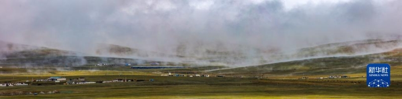 6月16日在國道317線那曲段拍攝的草原晨霧風光(拼接照片)。