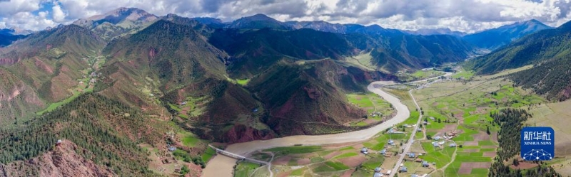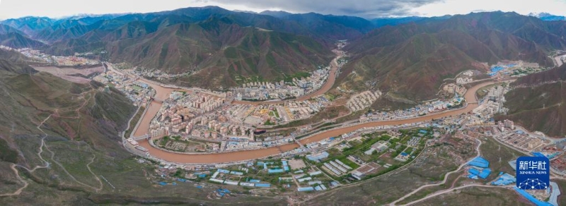 6月22日在國道317線昌都段拍攝的丁青縣尺牘鎮(zhèn)全景(無人機照片)。