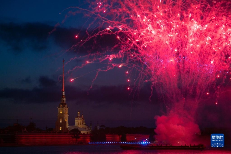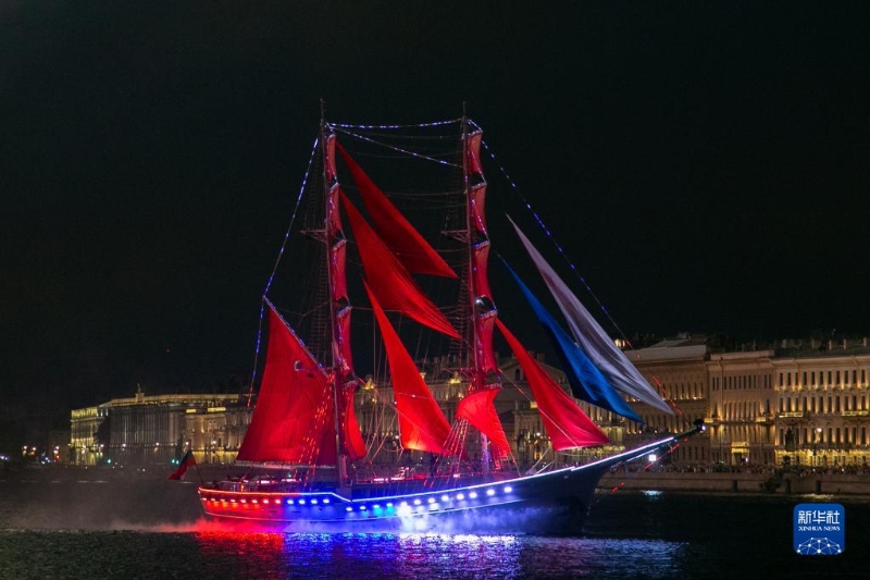 6月24日晚至次日凌晨,俄羅斯圣彼得堡迎來一年一度的“紅帆節(jié)”。節(jié)日期間,冬宮廣場上演大型音樂會,一艘“紅帆”在漫天煙花的映襯下駛過涅瓦河,慶祝中學(xué)生畢業(yè)、走向人生新起點。