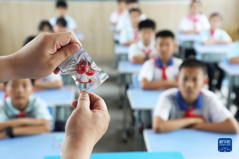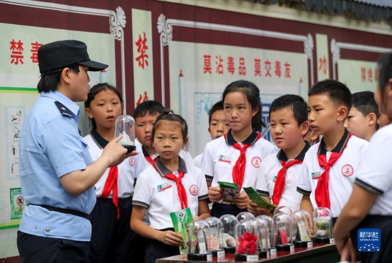 6月25日,在河北省唐山市豐潤(rùn)區(qū)姜家營(yíng)鎮(zhèn)楊家鋪小學(xué),民警為學(xué)生講解毒品危害。