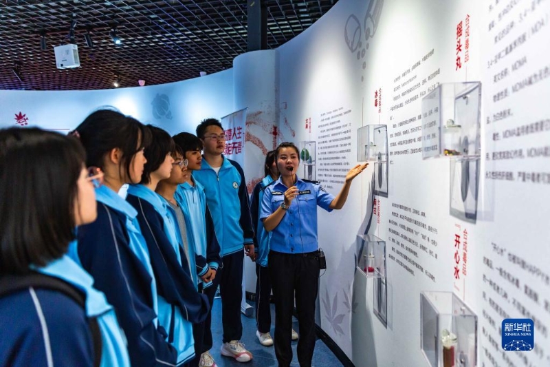 6月25日,民警在貴州省安順市禁毒宣傳教育基地為學(xué)生講解毒品相關(guān)知識(shí)。
