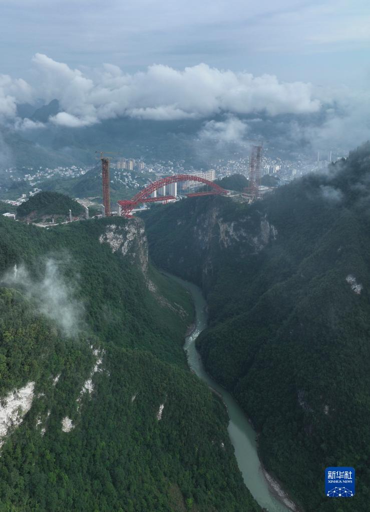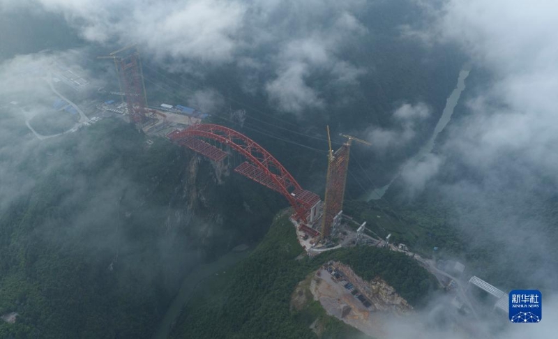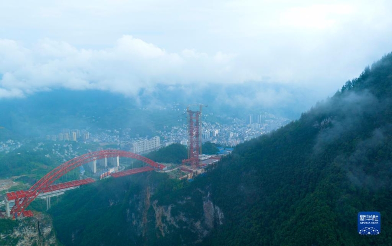 溇水河特大橋位于湖北省鶴峰縣境內(nèi),是宜(都)來(鳳)高速公路鶴峰東段的控制性工程。大橋全長328米,橫跨深度300多米的峽谷。目前,橋梁建設(shè)者正在進行鋼梁吊裝施工作業(yè),預(yù)計6月底完成吊裝施工。